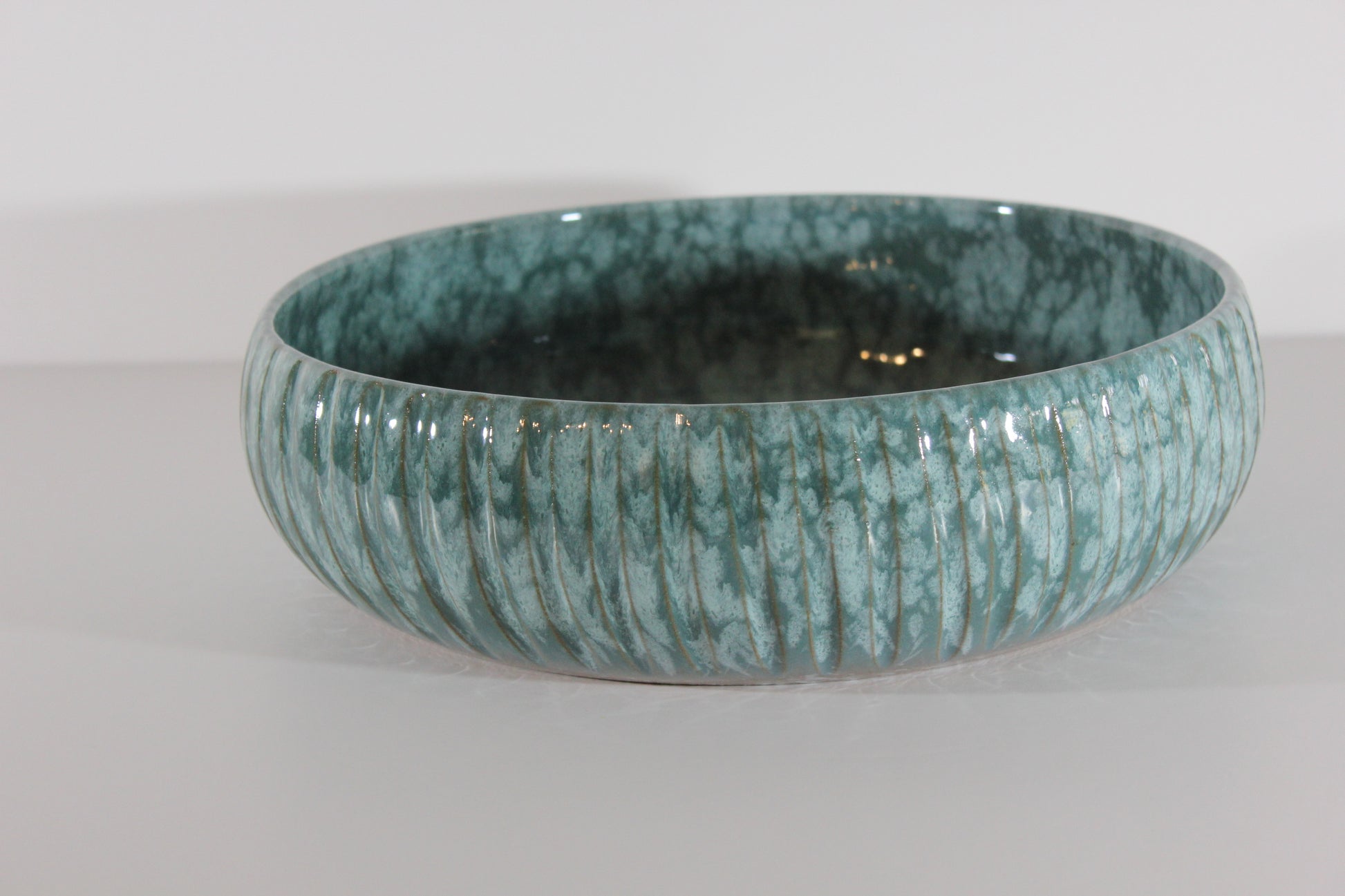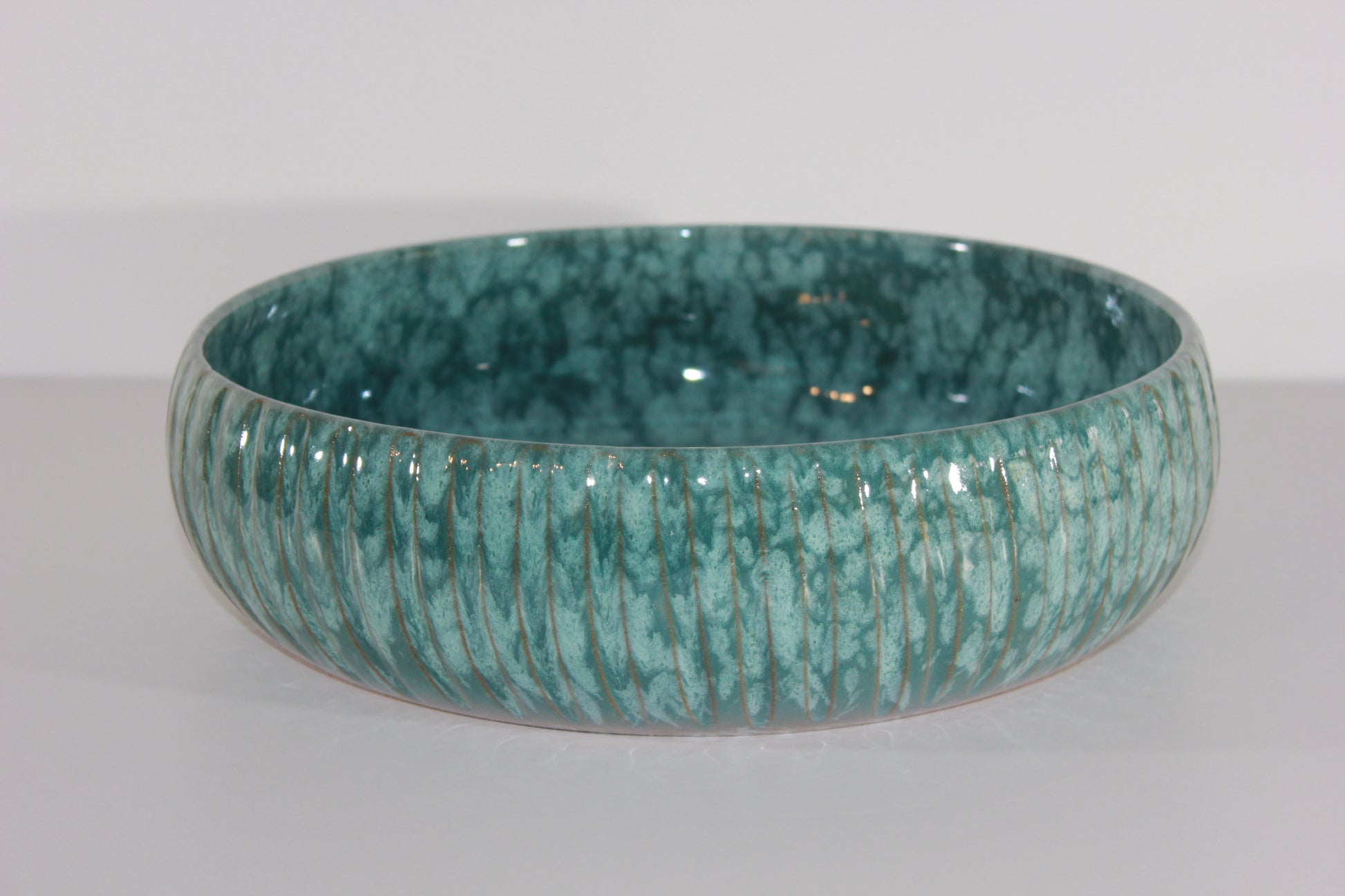 Meet your new favorite bowl—a playful burst of speckled teal that's totally on-trend. With its wide, elegant silhouette and charming striped edges, this piece brings personality to your table without taking itself too seriously. 30 cm diameter.